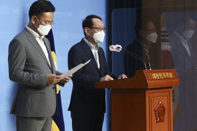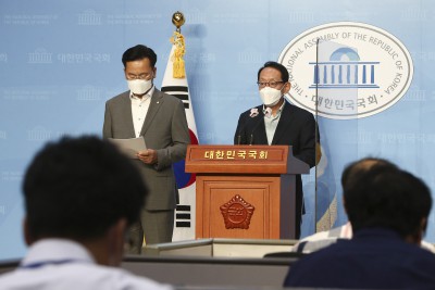 국회 소통관에 선 김도읍 간사... 추미애 장관 아들 병가 의혹 제기