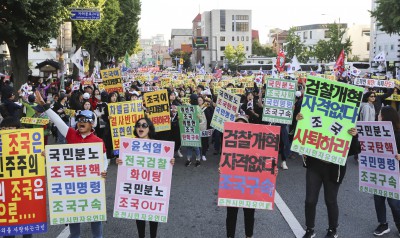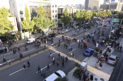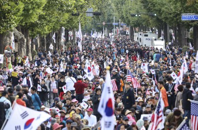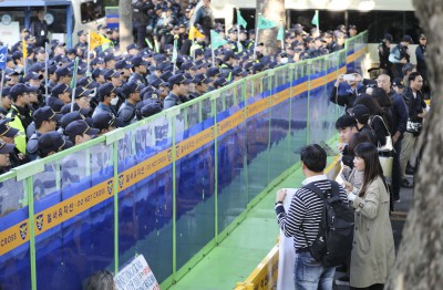 [사진] 경찰과 보수성향 단체 사이에 등장한 조국 지지자