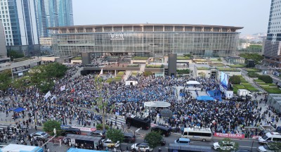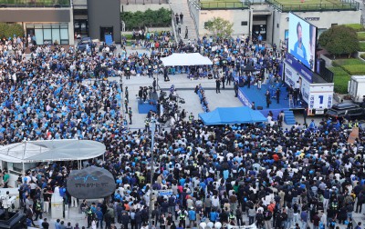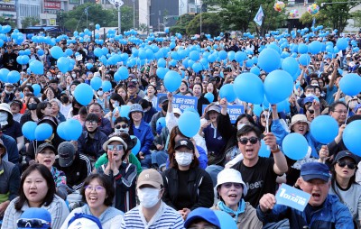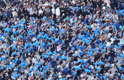 부산역에 집결한 이재명 더불어민주당 대선후보의 지지자들