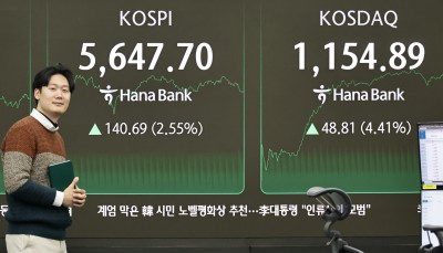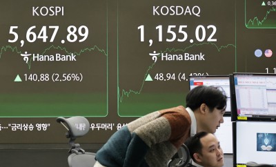 코스피 2.55% 상승 5647.70... 코스닥 4.41% 상승 1154.89 거래중