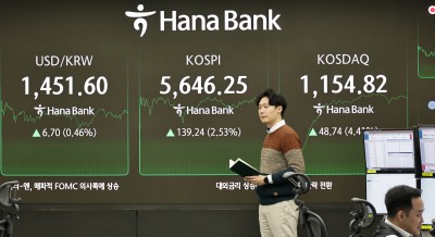 코스피 5640선 ...달러/원 환율 1450원대 거래중