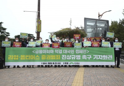 구회 외치는 민생당, '라임·옵티머스 증권범죄 진상규명을 촉구 기자회견'