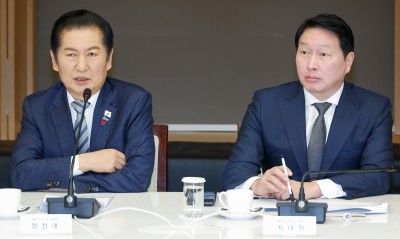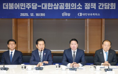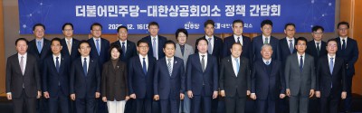 기념촬영 하는 '더불어민주당-대한상공회의소 정책간담회' 참석자들