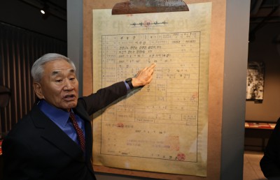 박종철 열사의 사망진단서 설명하는 이재오 민주화운동기념사업회 이사장