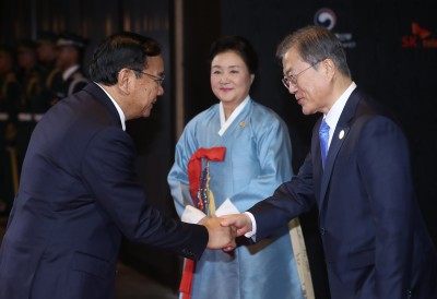 [사진] 문재인 대통령, 쁘락 소콘 캄보디아 부총리와 함께!