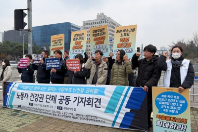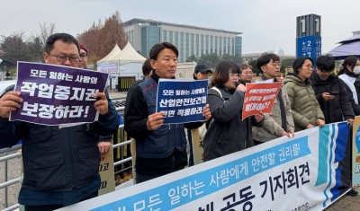 수원지법 앞에서 열린 아리셀 참사 관련 유가족 기자회견