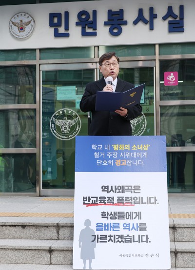 정근식 서울시교육감, '평화의 소녀상 철거 주장 시위대에 경고'