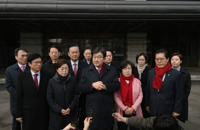 헌법재판소 앞에서 입장표명 나선 권성동 국민의힘 원내대표