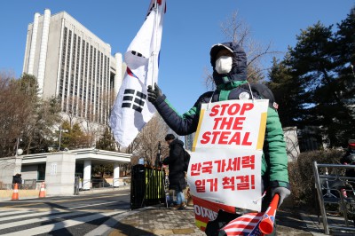 윤석열 전 대통령 결심공판...법원 앞에 모인 소수 지지자