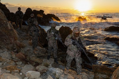 경계용 드론 이용한 수제선 정밀정찰 작전 수행나선 군 장병들