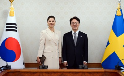 기념촬영하는 김민석 총리와 빅토리아 스웨덴 왕세녀 내외