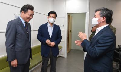 대화 나누는 이낙연 대선 경선 예비후보 - 양승동 사장