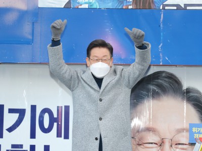 부천 유권자에게 지지호소하는 이재명 더불어민주당 대통령 후보