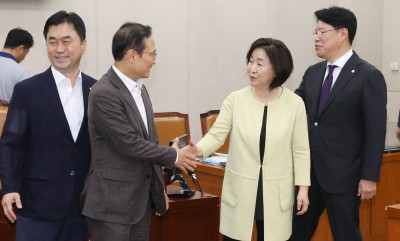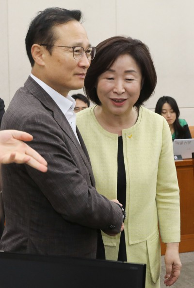 [사진] '뒤를 잘 부탁합니다' 악수 나누는 홍영표-심상정
