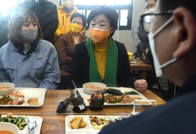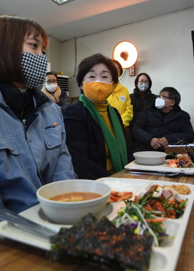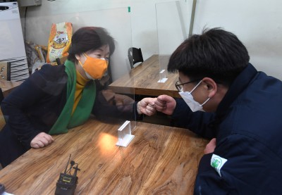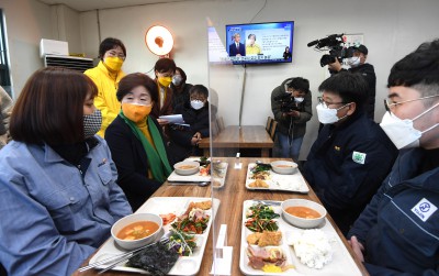 안산 시화공단 작은공장 노동자들 만난 심상정 대선 후보