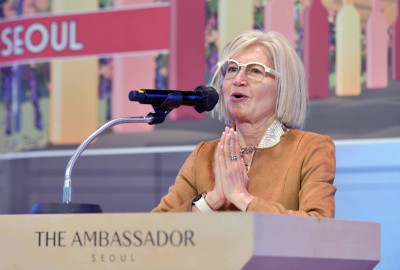에밀리아 가토 주한 이탈리아 대사가 축사하는 ‘감베로 로쏘 – 2025 TOP 이탈리안 와인 로드쇼’