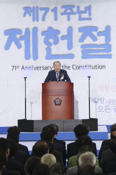 [사진] '제71주년 제헌절 경축식' 기념사 하는 유경현 대한민국헌정회장