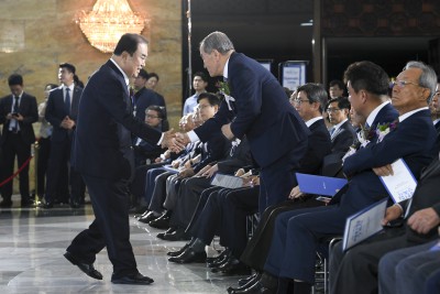[사진] 악수 하는 문희상 국회의장 - 유경현 헌정회장