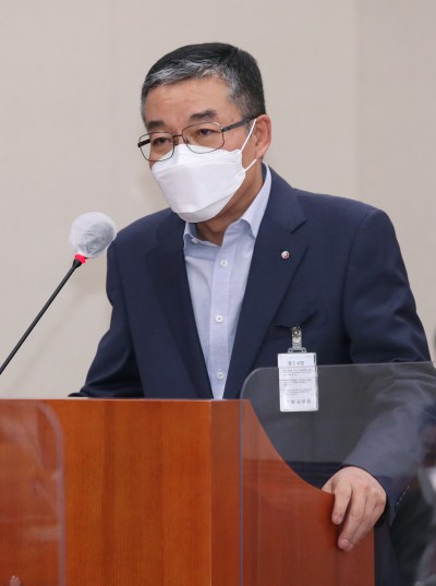 답변하는 LG전자 H&A사업본부 에어솔루션사업부장 이감규 부사장