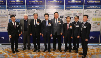 [사진] '2019 상생형 지역일자리 포럼' 기념촬영하는 이목희 부위원장-이재갑 장관