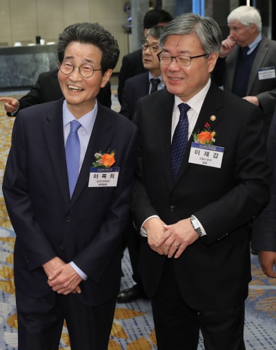 [사진] 대화 나누며 웃는 이목희 부위원장-이재갑 장관