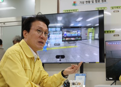 인천연안여객터미널 안전관리 현황보고, 발언하는 김민석 총리