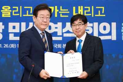 인태연 공동의장에게 임명장 전달하는 이재명 더불어민주당 대표