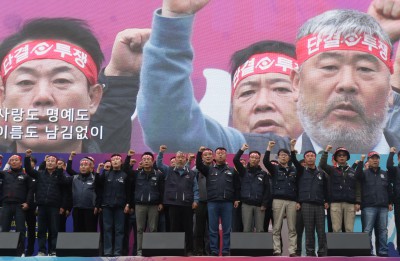 임을위한 행진곡 제창하는 '2025 한국노총 전국노동자대회'