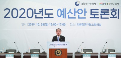 [사진] '2020년도 예산안 토론회' 축사 하는 장병완 경제재정연구포럼 공동대표