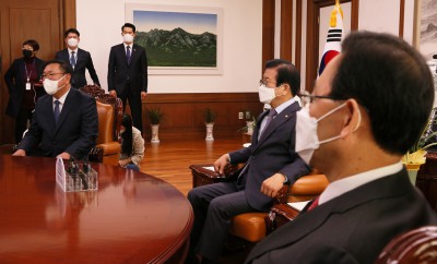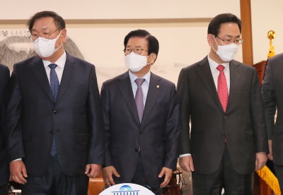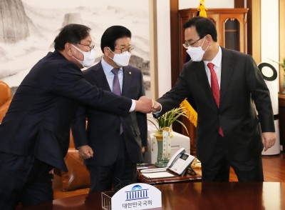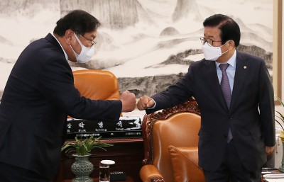 [영상] 박병석, 여야 원내대표 만나 "어려운 시기에 모범 보여 감사"
