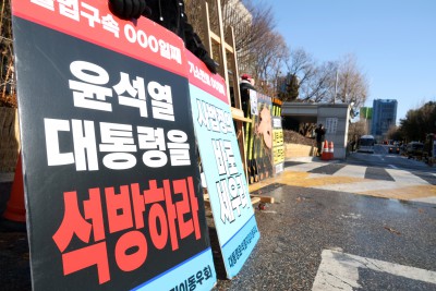 윤석열 전 대통령 결심공판...법원 앞 피켓 든 지지자