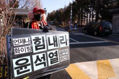 尹 내란 우두머리 혐의 결심공판...법원 앞에 모인 지지자