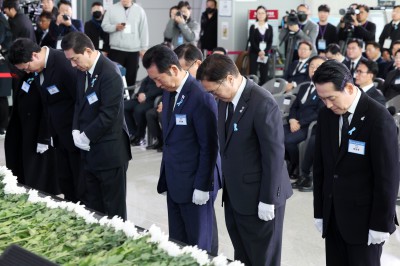 ‘12.29 제주항공 여객기 참사 1주기 추모식’ 묵념하는 국회의장과 당 대표들