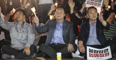 [사진] '조국 임명 정권 종말' 참석 의원들과 구호 외치는 황교안