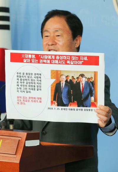 [사진] '조국 후보자 자녀 인턴 증명서 의혹 제기' 기자회견 하는 주광덕 의원