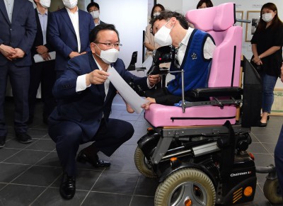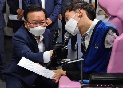 '편지 내용 잘 실천하겠습니다' 인사 나누는 김부겸 총리