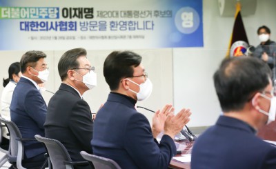 이필수 대한의사협회장에게 정책제안서 전달받는 이재명 대선 후보