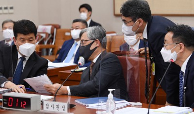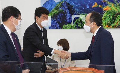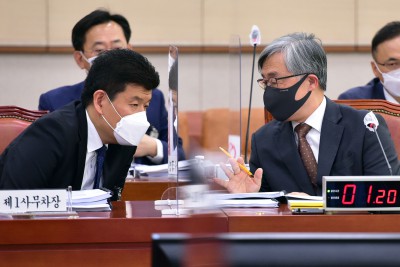 "반갑습니다" 악수하는 추경호 소위원장 - 최성호 감사원 신임 사무총장