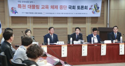 [사진] 이인영 원내대표, '특권 대물림 교육 체제 중단 국회 토론회'