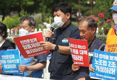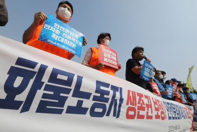 '화물노동자 생존권 보장!' 구호 외치는 특수고용노동자 대책위