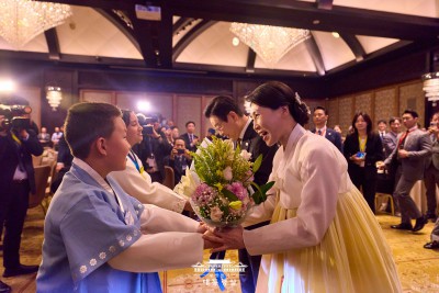 이집트에서 동포와 국민의례하는 이재명 대통령 - 김혜경 여사