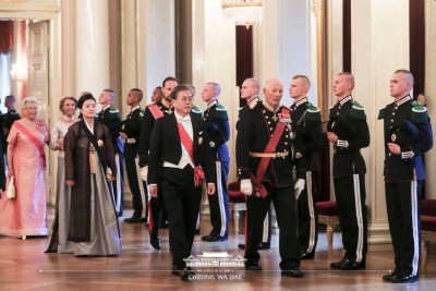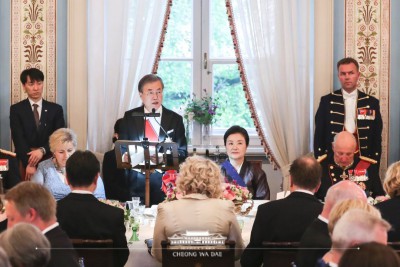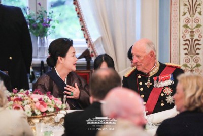 [사진] 노르웨이 국빈만찬 , 국왕과 대화하는 김정숙여사