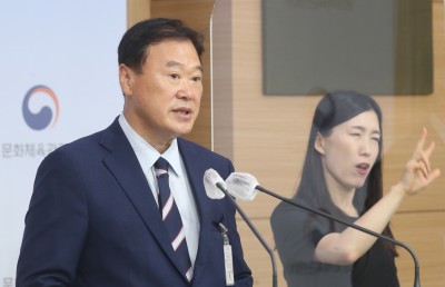 브리핑하는 진재수 강릉 세계합창대회 조직위 운영추진단장