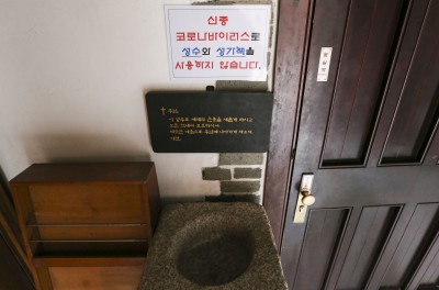 코로나19가 바꾼 일상 "성수와 성가책을 사용하지 않습니다"