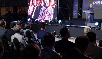 '청계천 복원 20주년 행사' 축사하는 오세훈 서울시장
