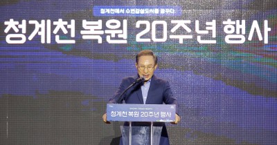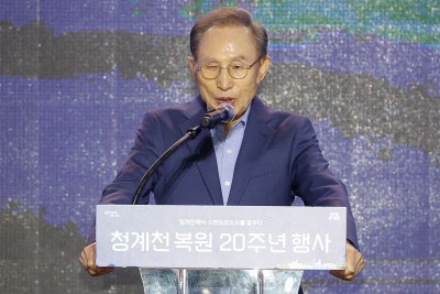 '청계천 복원 20주년 행사' 축사하는 이명박 전 대통령