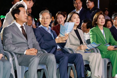 청계천 복원 20주년 행사 참석한 오세훈-이명박-최호정-나경원