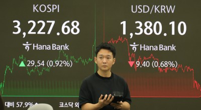 코스피 0.92% 상승 3227.68...원·달러 환율 0.68% 하락 1380.10원 마감