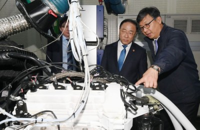 [사진] 매연 저감장치 엔진 동력 실험 살펴보는 홍남기 부총리