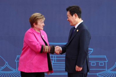 크리스탈리나 게오르기에바 IMF 총재와 인사하는 이재명 대통령